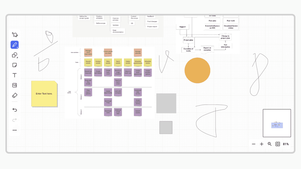 In order to tackle the aforementioned challenge, I conducted user research to gain valuable insights into the needs, preferences, and pain points of our users. The research primarily focused on understanding the current user interaction with the whiteboard, identifying their frustrations with hand-drawn sketches, and gathering their expectations for enhanced graphical elements.