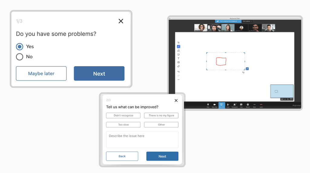 Due to technical limitations of the project, we couldn't incorporate a feedback window after each meeting. Instead, users were prompted to provide feedback in specific situations: