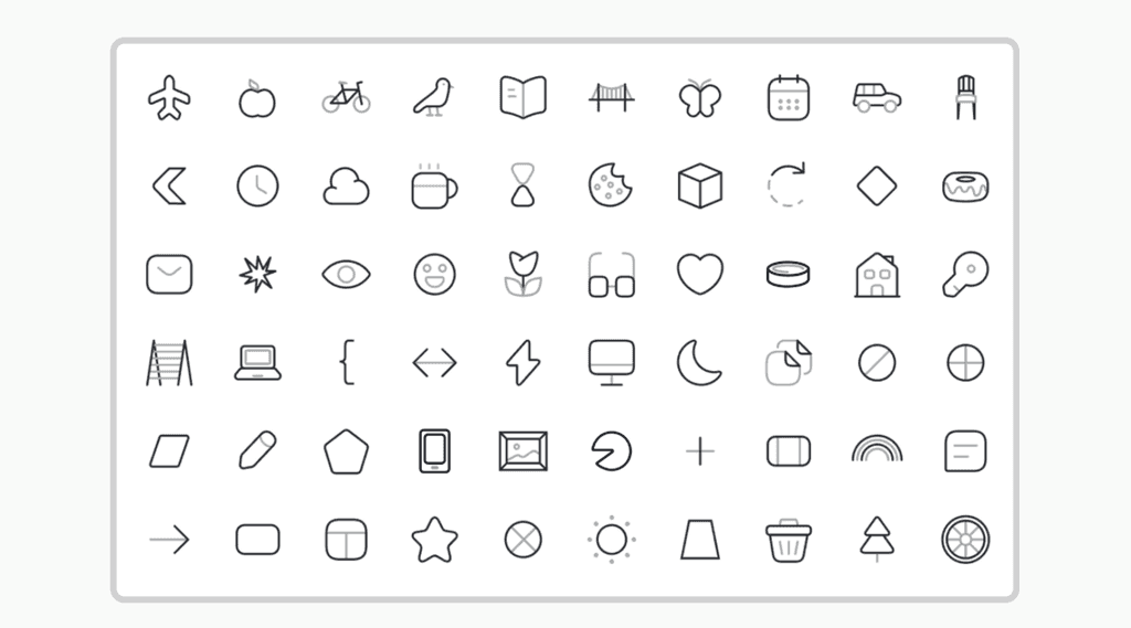 I took the initiative and created a dedicated icon library to replace hand-drawn sketches. The development team provided a list of drawings they used during the artificial intelligence training. To enhance the clarity and crispness of each shape, I applied a two-tone style.